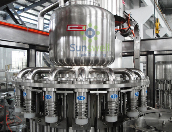 De hete het vullen machine is norm 3 in-1 monoblock. Maar aan de speciale productievoorwaarde, een andere desinfecterend middel zou het spoelen kunnen worden toegevoegd, die 4 in-1 monoblock is. Het systeem heeft volledig de kenmerken van de drank (zoals het schuimen van de theedrank en het gemengde sap) en het technische vereiste van het hete vullen overwogen.